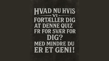 Mon ikke vi kan udfordre din viden lidt i denne quiz ved at spørge om "Hvilken dansk forfatter skrev 'Den afrikanske Farm'?" eller måske endda "Hvilket politisk dramaserie har Kevin Spacey som Frank Underwood?"? Se om du kan slå 4/10 i denne quiz!