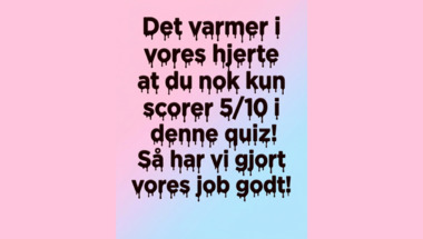 5/10 er hvad folk i gennemsnit scorer i denne quiz indtil videre. Er du klar til at svare på spørgsmål som "Hvad hedder brus i sodavand til daglig?" og "I hvilken nordjysk by finder man det berømte natteliv kaldet 'Gaden'?"